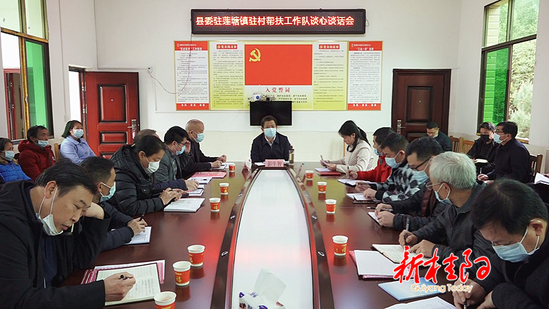 3月31日上午,县委驻莲塘镇驻村帮扶工作队谈心谈话会在莲塘镇甘棠村举行,县委书记彭生智到会指导,强调要全力提振信心,全力明确任务,全力交好答卷,全力压实责任,落实精准精细要求,在小节细节上下功夫,充分激发群众内生动力,决胜脱贫攻坚。