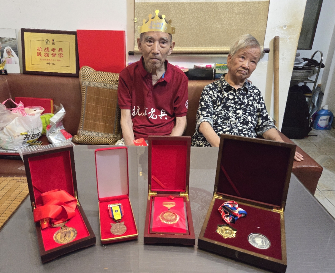 “你们有时间过来坐,你们来坐我好欢喜。”98岁高龄的赵金义耳朵已不太听得清,但精神饱满,喜欢热闹,他和志愿者们重新聊起了当年的抗战经历。赵金义是河南人,1942年参军时年仅16岁。1944年日军入侵洛阳,赵金义接到炸毁洛阳大桥阻止日军部队进犯的任务,在执行任务过程中他的腰部和左腿被严重炸伤,随后紧急转移到郑州41兵站医院接受治疗。1950年,赵金义又毅然随所在部队加入抗美援朝志愿军,赶赴朝鲜战场,却因旧伤复发无奈在郴州火车站下了车,之后便安家桂阳。如今,这位抗战英雄儿孙满堂,最大的玄孙已经年满18岁。