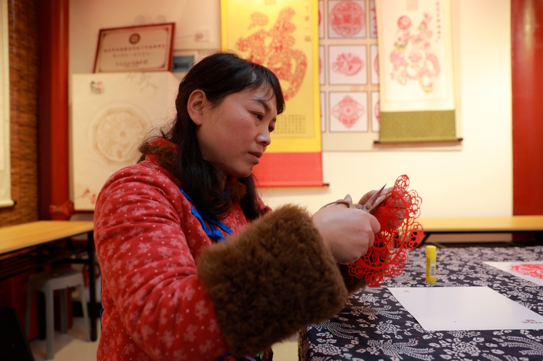 “剪窗花,贴福字”象征着辞旧迎新、接祥纳福。剪纸是中国民间艺术的瑰宝,它以千变万化的图案,传递着美好的愿景。甲辰龙年来临,郴州市级非遗剪纸传承人黎艳青以“龙腾盛世”为主题,创作出100多条大小不一、形态各异的生肖龙剪纸作品,以“百龙贺岁”喜迎龙年新春。